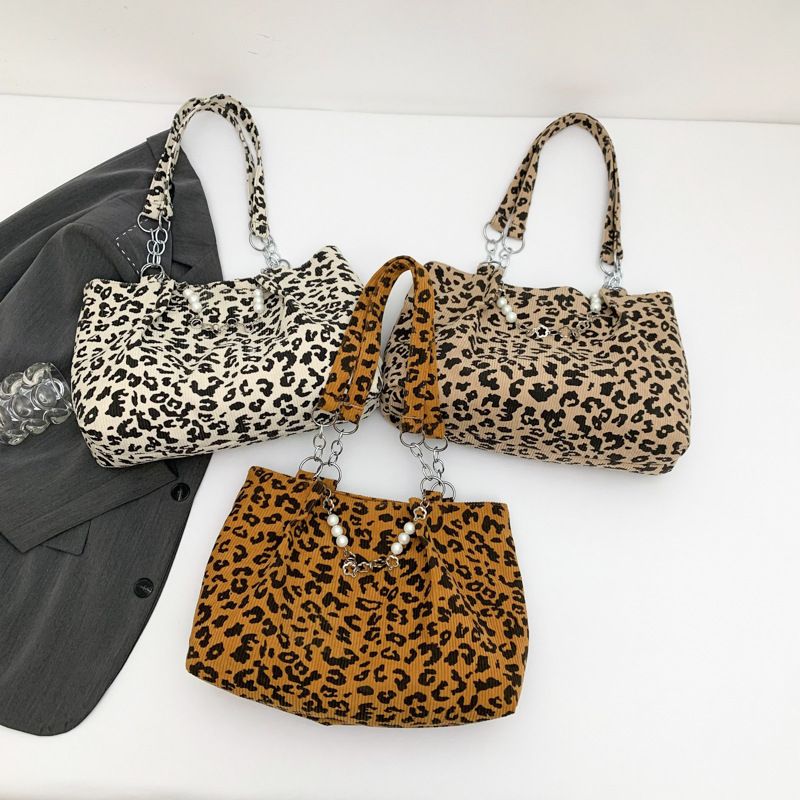 Casual Leopard Print Handbag Stylish Single Shoulder Tote Bag Women's Commuter Underarm Bucket Bag