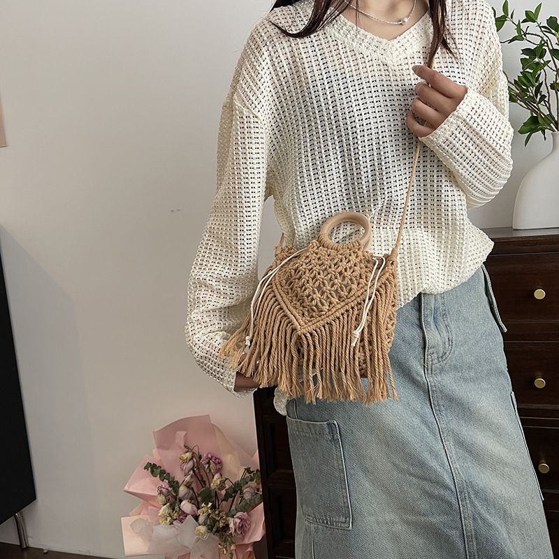 Fashion Niche Woven Tassel Handbag for Women 2025 New High-Quality Texture Office Commuter Shoulder Crossbody Bag