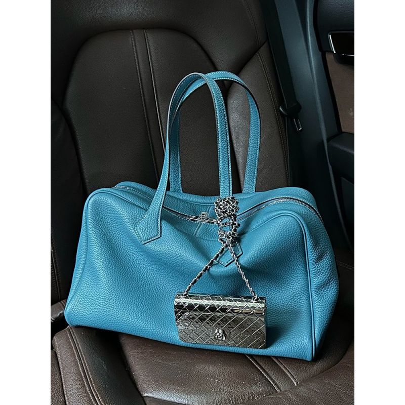 Large Capacity Tote Bag for Women 2024 New High-end Texture Litchi Grain Bowling Boston Bag Single Shoulder Briefcase