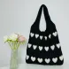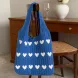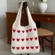 Women Knit Love Tote Bag Color Blocking Lightweight Handbag Large Capacity Shoulder Storage Bag Crochet Satchel Bag Shopping Bag