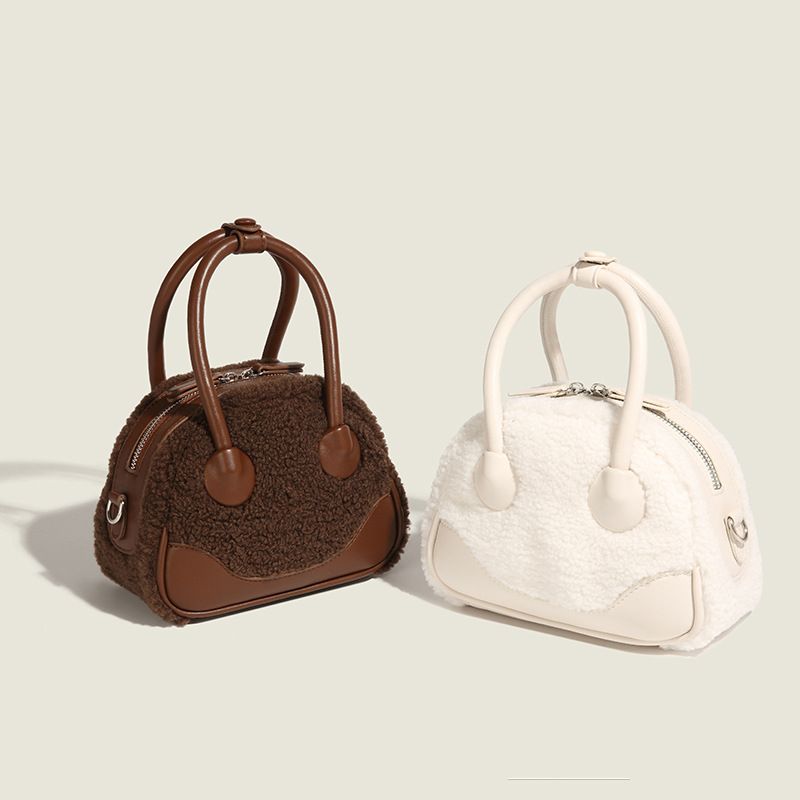 2023 Women's Bag Autumn/Winter Plush Versatile Handheld Boston Bag, High end and Small niche Lamb Wool Single Shoulder Crossbody Bag