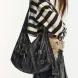 Borsa a mano unica grande capacità in pelle di immondizia Y2k nera con rivetti per donna, borsa a tracolla retrò casual