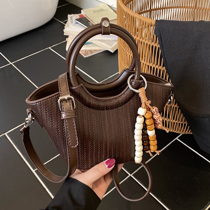 Borsa a secchiello con motivo intrecciato, autunno 2025, adatta per lavoro, pendolarismo, uso quotidiano, tracolla, borsa a tracolla,