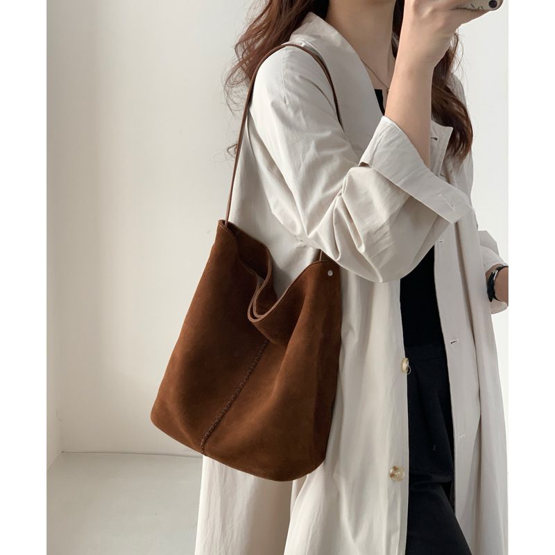 Borsa a secchiello in pelle smerigliata cucita a mano 2024 nuova borsa a tracolla singola in pelle di mucca per i pendolari