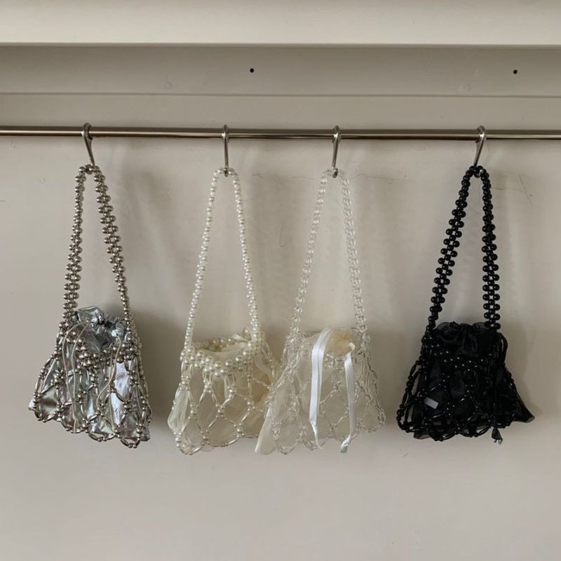 Summer Super Hot Pearl Bucket Small Bag for Women 2025 New Hollow Handheld Crossbody Woven Bag