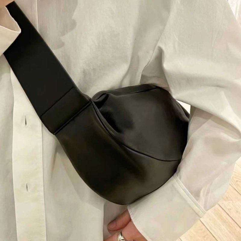 New Fashion Niche Pleated Bag Lazy Single Shoulder Dumpling Bag Genuine Leather Wide Shoulder Strap Crescent Bag Underarm Crossbody Bag
