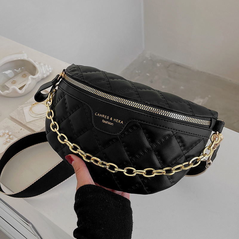 2023 New Bag Women's Korean Fashion Solid Color Chest Bag Car Sewn Waist Bag Chain Handbag Crossbody Chest Bag