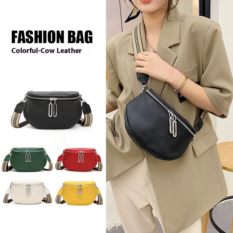 Borsa a tracolla alla moda, borsa da donna, nuova borsa a tracolla in vera pelle, doppia cerniera, strato superiore in pelle di mucca, piccola borsa a tracolla