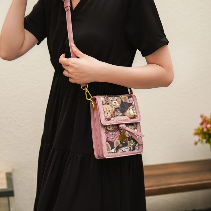 Women's Bag 2023 New Simple Fashion Cute Bear Print Shoulder Crossbody Bag Embroidered Phone Bag