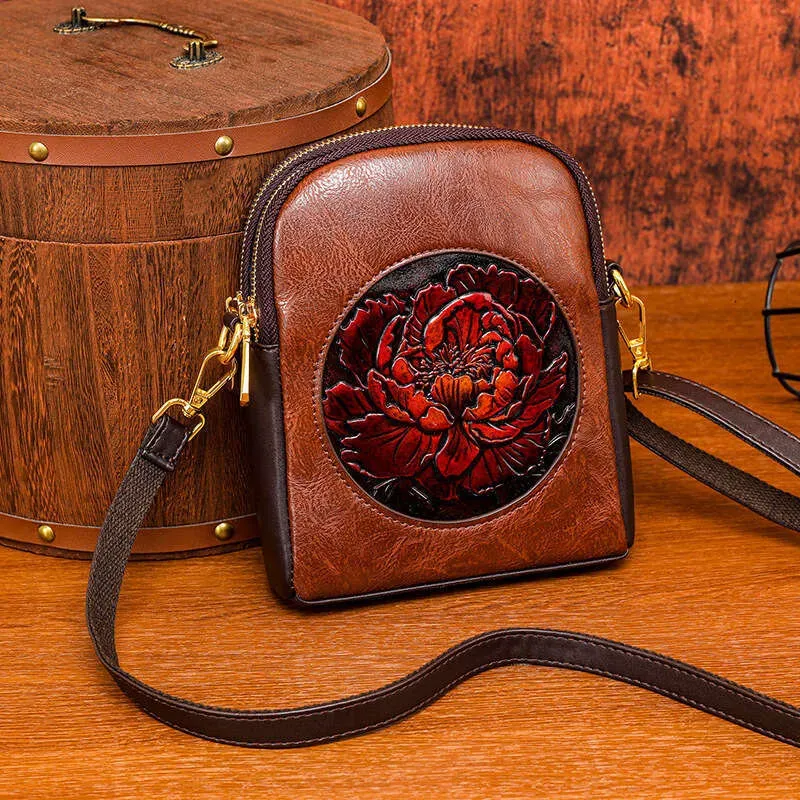 Borsa a tracolla con tracolla singola, con texture in rilievo di peonia, nuova borsa casual da pendolare in stile cinese