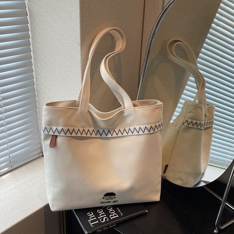 Embroidered Multi-Pocket Thick Shopping Bag Tote Canvas Bag Autumn Winter Versatile Korean Style Mommy Underarm Shoulder Bag for Women