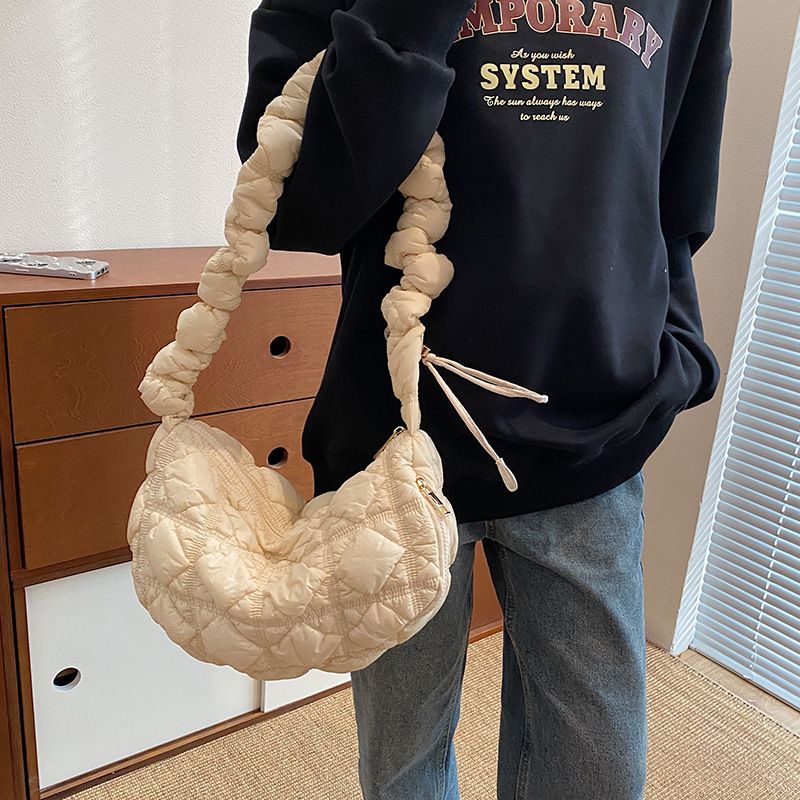 Borsa a tracolla da donna con coulisse, versatile, nuova, plissettata, grande capacità, ricamata, modello nuvola, Niche