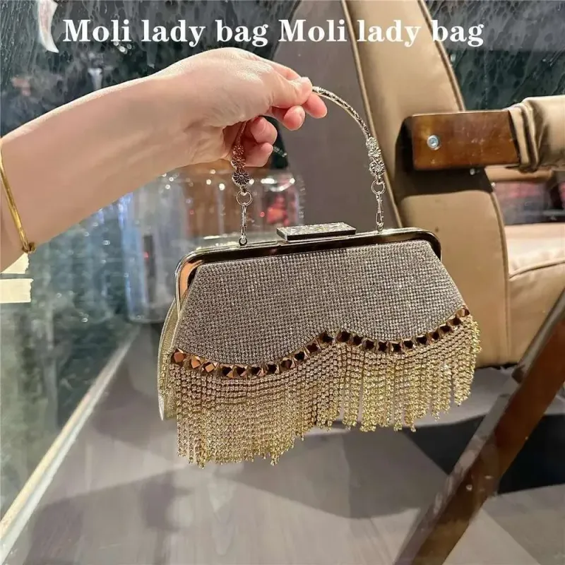 Borsa a tracolla da donna con strass di cristallo, da sera, da festa, da sposa, da sera, da donna, con pochette e nappa glitterata, 2025