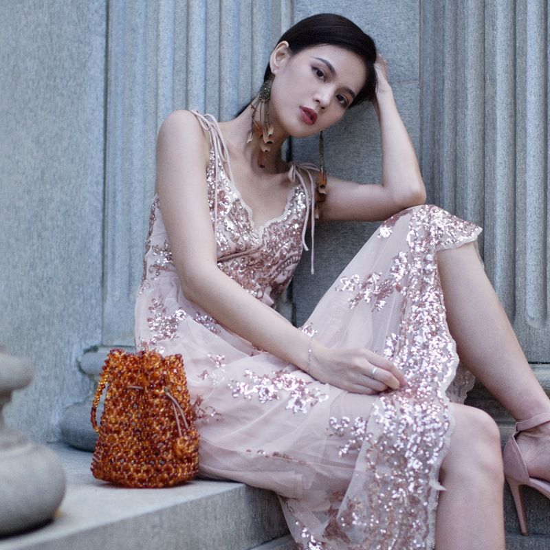 Borsa a tracolla da donna con tracolla singola, secchiello con perline fatto a mano, borsa a tracolla in acrilico intrecciato con design di nicchia 2020