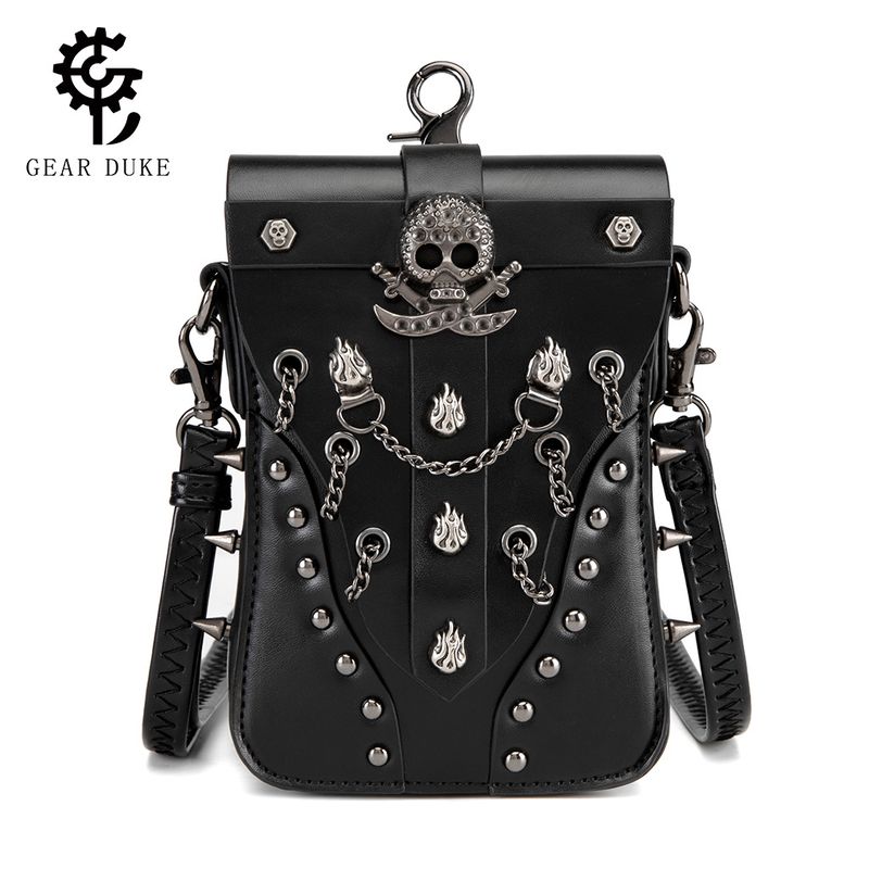 Borsa a tracolla da donna con tracolla singola, stile punk, con teschio e borchie, portamonete per telefono
