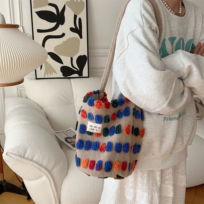 2025 Crossbody Bag Handheld Shoulder Bag Shopping Storage Bag Fashion Trend Plush Bucket Bag Women's Bag