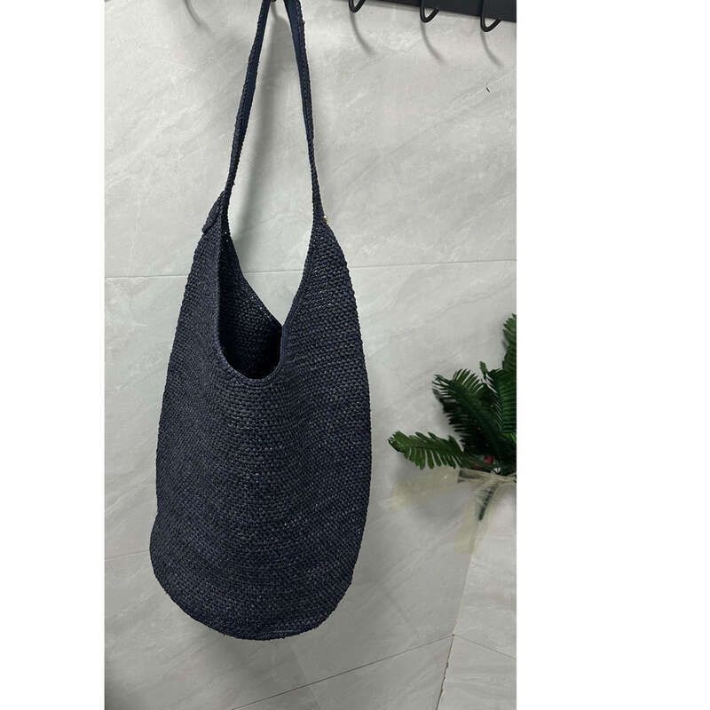 Japanese and Korean Feng Shui Bucket Bag Handmade Woven Lafite Grass Bag Women's Summer Beach Bag Travel Shoulder Bag