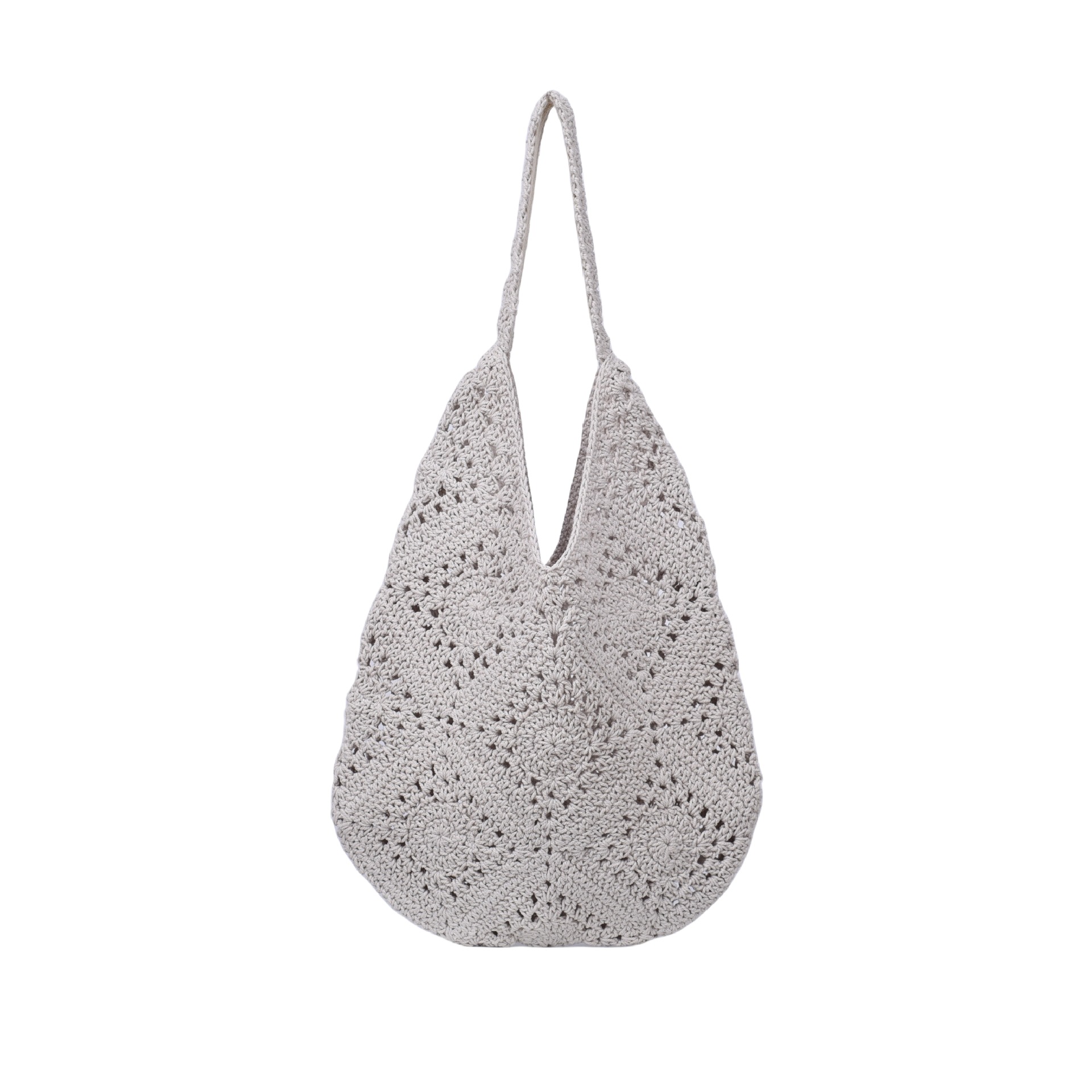 Borsa a tracolla da spiaggia intrecciata in erba Laizhou da donna, fatta a mano all'uncinetto, con filo di cotone, griglia della nonna, fiore cavo