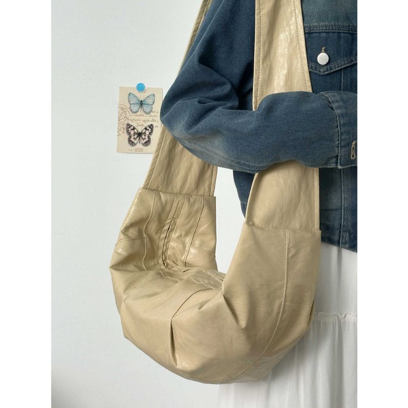 High-End Crossbody Commuter Horn Bag for Women Korean Fashion Wide Shoulder Strap Wandering Dumpling Bag Single Shoulder Tote Bag Trendy