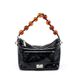Borsa a tracolla e a spalla con catena di perline - Borsa a mano pieghevole in pelle cerata retrò (borsa tote alla moda da donna, design vintage stropicciato)