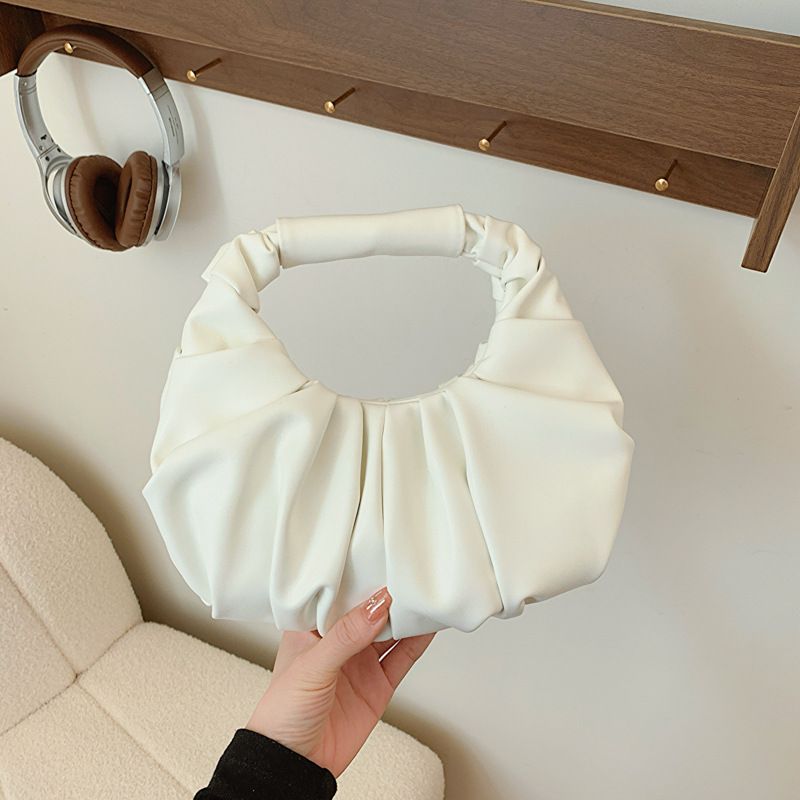 Women's Bag Solid Color PU Cloud Bag Trendy Fashion Pleated Niche Design Handbag Elegant Ladies Shoulder Crossbody