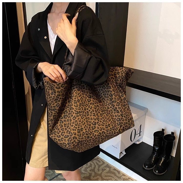 Korean Style Niche Leopard Print Canvas Bag 2025 New Casual Lazy Style Commuter Bag Shoulder Bag Large Capacity Tote Bag