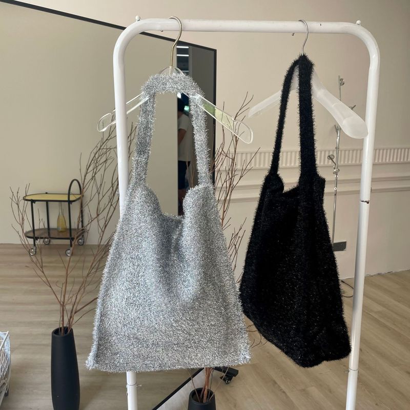 Autumn and Winter Glass Yarn Single Shoulder Bag Large Capacity Magnetic Buckle 5 Colors Women 2024 New Gold Thread Fashion Tote Bag