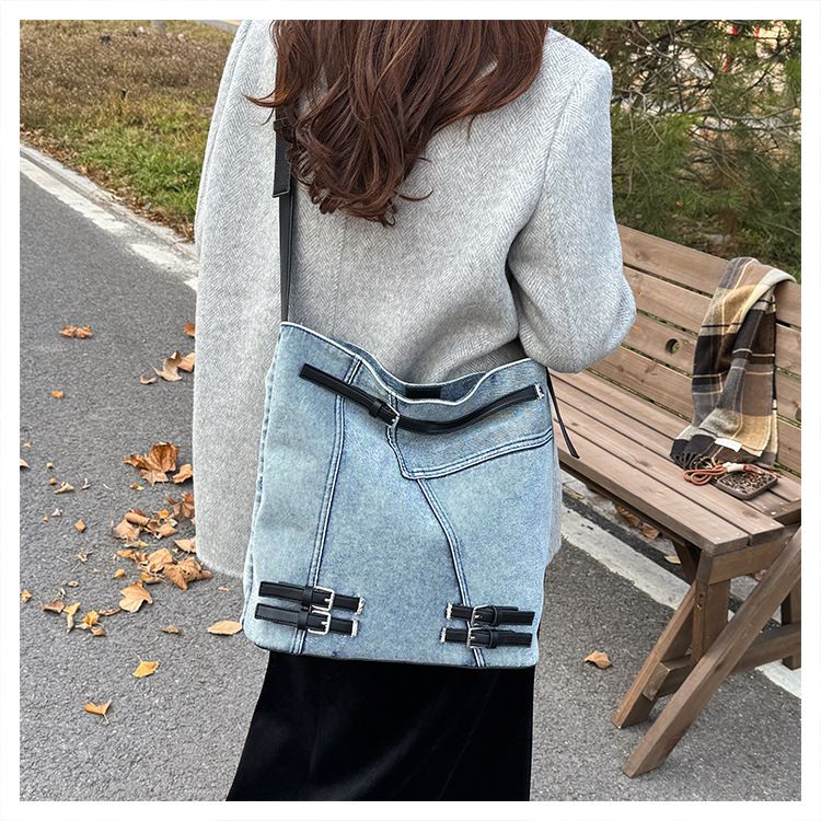 Borsa a tracolla in tela da donna, alla moda e alla moda, nuova borsa in denim in stile coreano, grande capacità, per studenti, per la classe