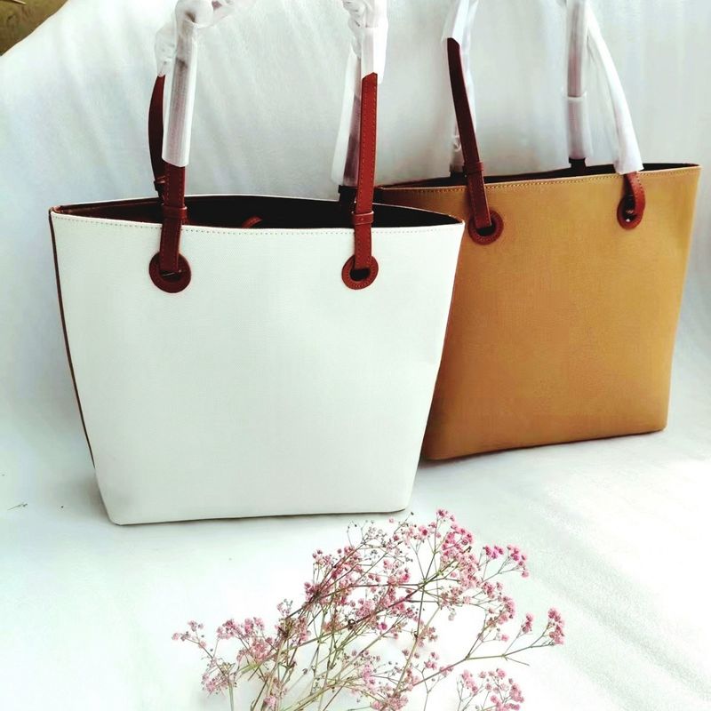 The shopping bag is inspired by home decor cushions; its spacious backpack structure can be intentionally seen both inside and outside, while the curved sides and knotted leather straps at the edges enrich its silhouette.Main features: Made of canvas combined with leather; shoulder strap length is moderate making the canvas bag really comfortable to carry. The canvas feels thick and comfortable with dimensions of 37.5 x 112.5 cm