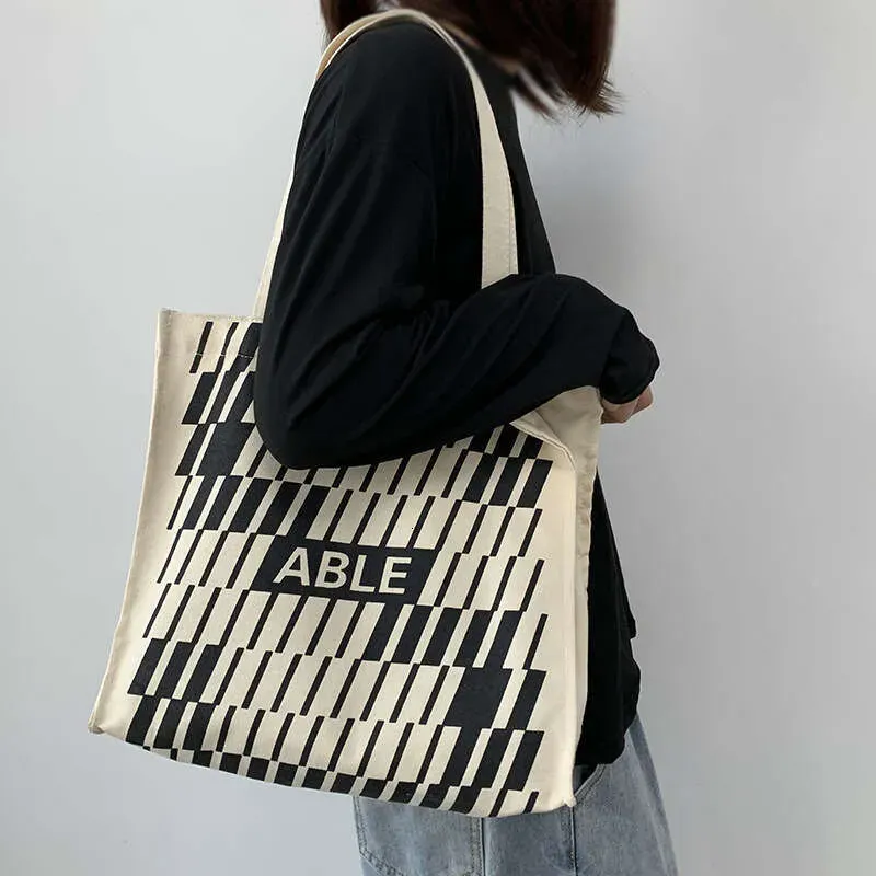 Large Capacity Canvas Ins Haruku With Zipper Shoulder Bag For Female Students Mori Style