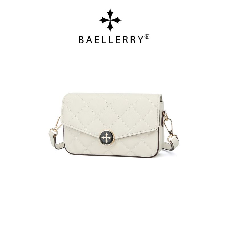 Women's Solid Color Bag New Baellerry Fashion Plaid Magnetic Buckle Single Shoulder Crossbody Bag Versatile