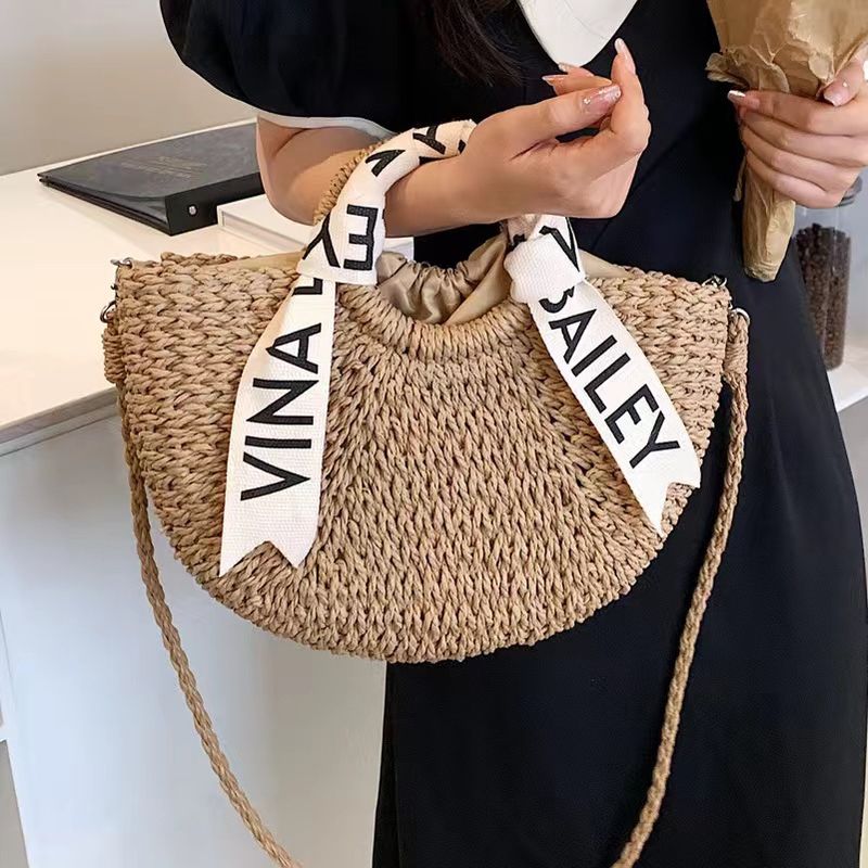Grass woven bag 2024 new fashionable internet celebrity women's bag single shoulder crossbody bag women's versatile Instagram portable vegetable basket bag