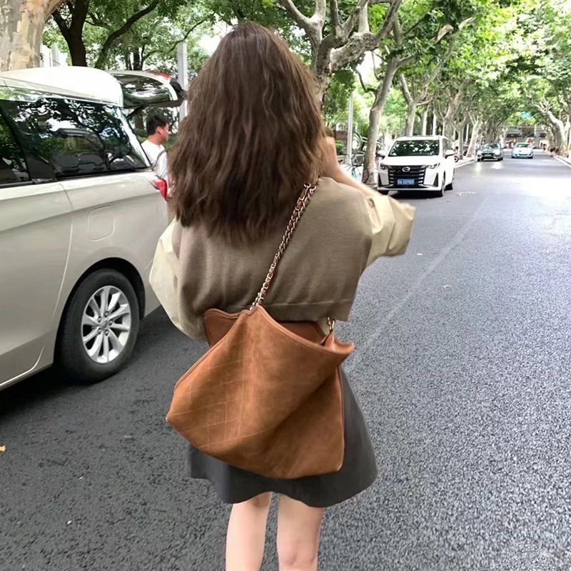 2025 Fall/Winter New Women's Shoulder Bag Large Capacity Suede Quilted Chain-Handle Vintage Tote Bag