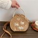 【】Round Straw Bag Fashion Pearl Flower Shoulder Crossbody Handbag Beach Vacation Women's Bag