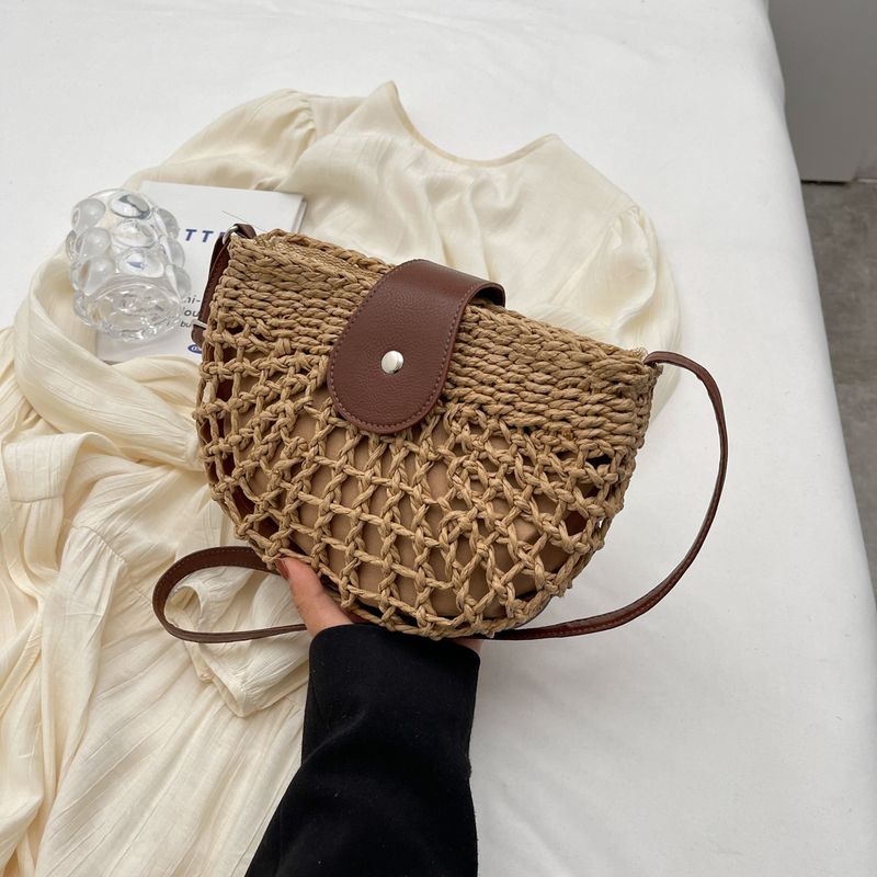 Borsa a tracolla semplice, versatile e alla moda, in paglia intrecciata, per donna, primavera 2025