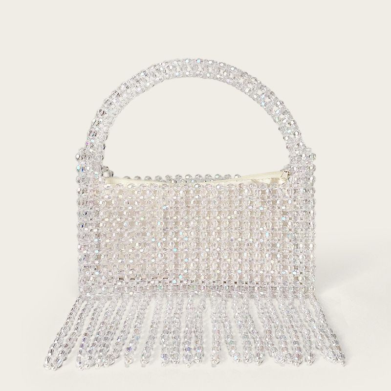 Borsa a tracolla singola alla moda per le donne, con nappa pesante intrecciata a mano, in stile vacanza, con perline, versatile e lucida al tatto.