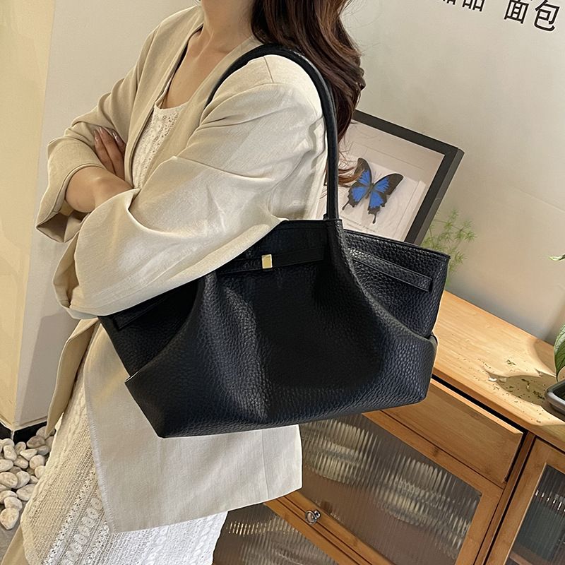 Large Capacity Tote Wing Bag Pleated 2025 Solid Color Niche Design Underarm Handbag Single Shoulder Tote Bag