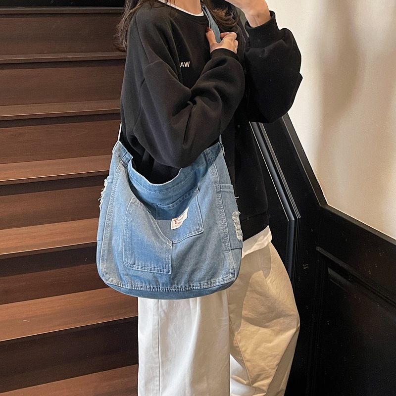 Denim Single Shoulder Bag for Women New Casual Stylish Crossbody Bag Versatile Teenage Tote Bag