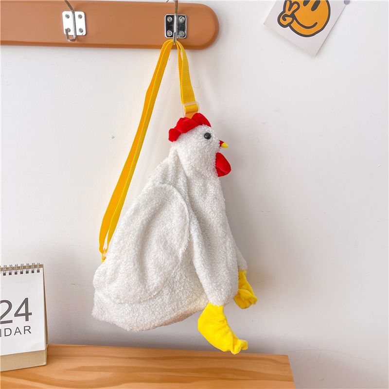 2025 New Ins Style Single Shoulder Crossbody Cute Short Plush Big Rooster Bag Quirky Student Children's Gift Casual Bag