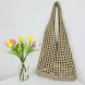 Women Fishing Net Handbag Hollow Out Knitting Shoulder Bag Solid Color Large Capacity Soft Woven Bag for Female Girls
