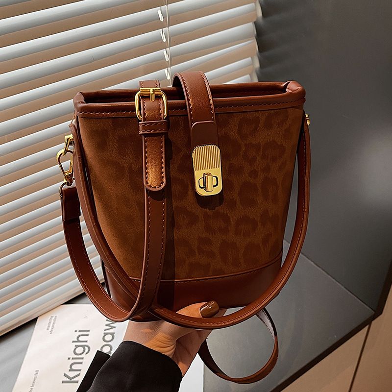Leopard Print Handheld Bucket Bag for Women 2025 New Winter Handheld Niche High-End Versatile Shoulder Crossbody Bag