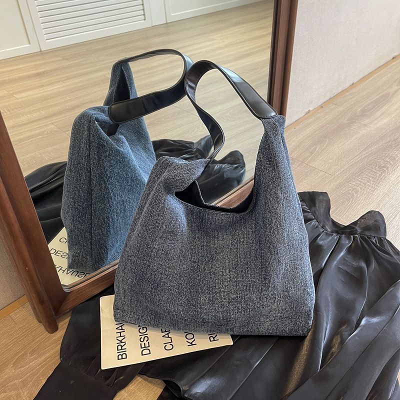 Versatile Denim Tote Bag for Women 2024 New Large Capacity Underarm Commuter Bag Fashionable Lightweight Shoulder Bag