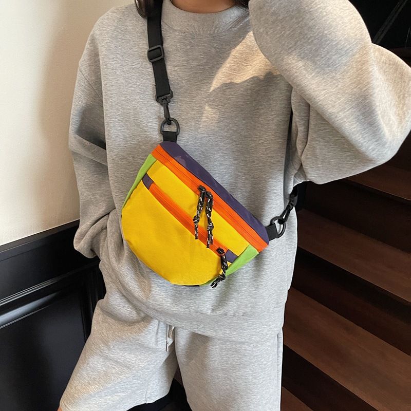 Summer Color-Block Saddle Bag for Women 2025 New Stylish Canvas Shoulder Crossbody Bag Versatile Chest Bag