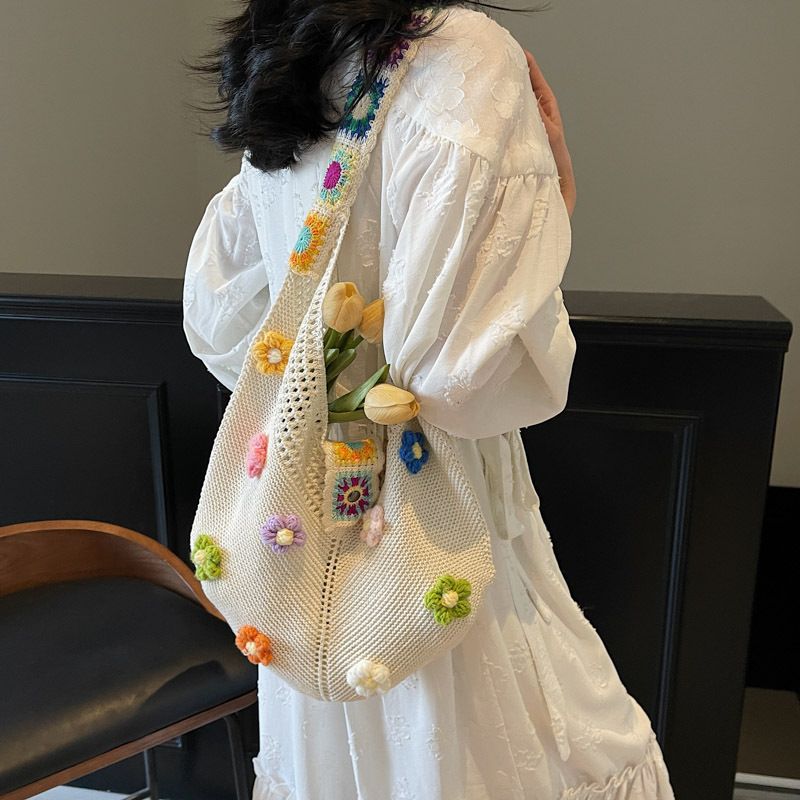 Hollow Woven Bag for Women, Large Capacity Summer Straw Bag, Beach Vacation Style, Relaxed Flower Beach Bag, Rattan Woven
