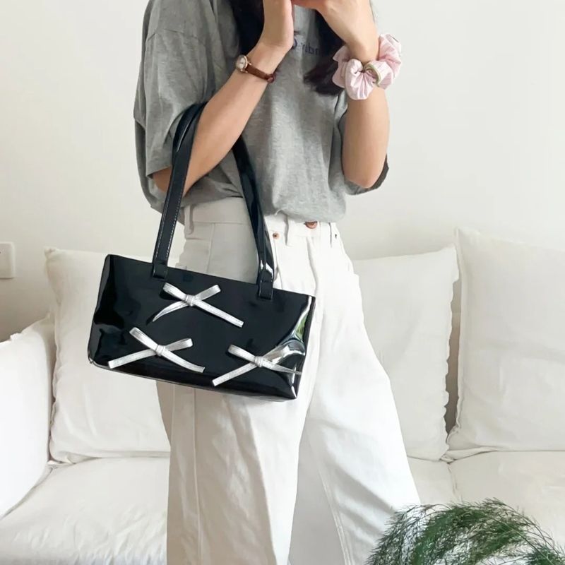 2024 Summer and Autumn New Ballet Style Bow Shiny Underarm Bag, Small and Sweet Cool Girl Handbag, Single Shoulder Women's Bag
