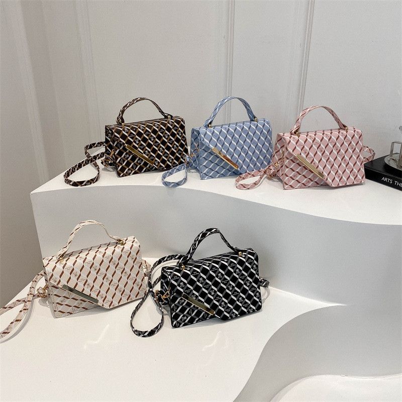 Borsa da donna casual a quadri, personalità giovanile, 2025, nuova, semplice ed elegante borsa a tracolla da pendolare, da donna, in metallo con blocchi di colore