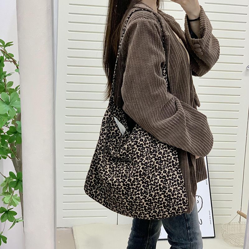 Woolen leopard print large bag for women in autumn 2025, new trendy Korean tote bag, casual large capacity armpit bag