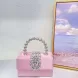Borsa da donna in raso di alta qualità, con scatola quadrata, in cristallo lucido Rhie Dia, pochette da sera, borsa a tracolla
