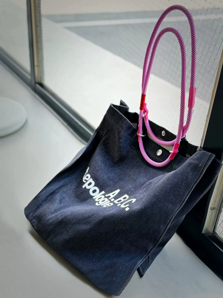 2024 New Casual Versatile Colorful Rope Letter Canvas Bag Tote Bag Large Capacity Women's Bag Korean New Product Trend