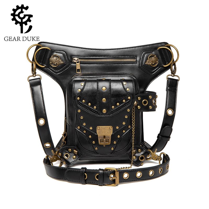 Borsa da donna steampunk retrò con rivetti, borsa da donna a tracolla singola, borsa da donna con catena, marsupio